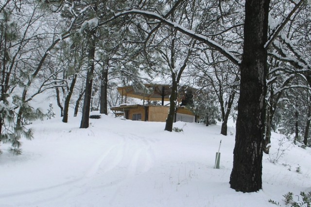 Back on October 2, 2005, we had shut down construction on our mountain house as the good weather came to an end. What followed were several months of the most extreme Winter in the area’s history. The San Francisco Bay Area broke an 80-year-old record for the most days of consecutive rain. Calaveras County experienced several snowstorms, including one that blanketed our mountain (at 2,700 feet elevation, normally below the snow line) under several feet of snow.