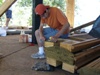 We spent several hours digging through the scrap wood piles for suitable pieces. These then had to be cut and nailed into place. A combination of bitumen and caulking provided a water-tight (and bug-tight) seal. Finally, by the end of the day Sunday, we had completed filling the holes. A cheer went up from the exhausted work crew.