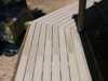 On Saturday morning, June 17, work began. Russell, Cameron, and Joss took on the job of completing the remaining deck sections. Because the last three sections of deck were contiguous, Gail requested that all of the planks line up at the intersections. Russell was able to accomplish this by bending and tweaking the composite planks as necessary.