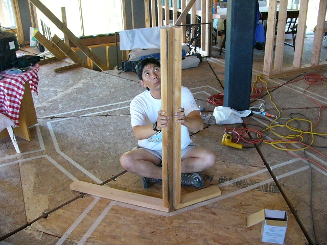 Russell does one of his “thought experiments” to work out a problem – in this case, how to attach two walls that join at an angle