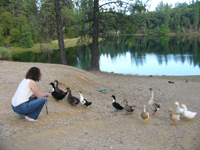 We also found time to take a couple of scenic drives. During one drive, when we went across the valley to try to see our mountain from afar, we stumbled upon a small reservoir called Lake Tabeau. Gail was greeted here by a flock of friendly geese and ducks looking for a handout.