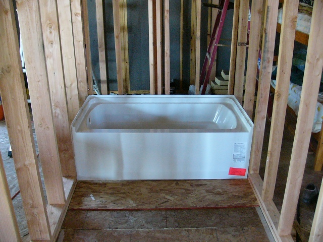 So, during our previous week’s visit, we had purposely driven the van up so that we could stop at Lowe’s and buy a bathtub. It would be months before we would actually hook the bathtub up, but we needed to park it in the bathroom before we installed the final wall.