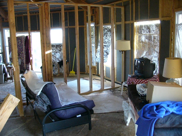 Meanwhile, Russell remained inside, but moved from the northeast side of the house to the southwest side, which included the master bedroom and bathroom, utility room, and living room walls. These walls represented the more challenging half of the house, as they joined each other at all sorts of weird and challenging angles.