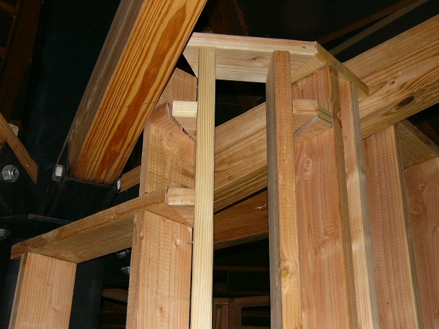 The weather was better on Sunday morning, allowing Gail and Steve to put a layer of tar paper on the gazebo roof. Russell, meanwhile, began installing joists on the southwest side of the upper story.