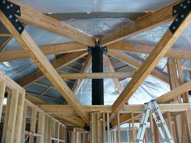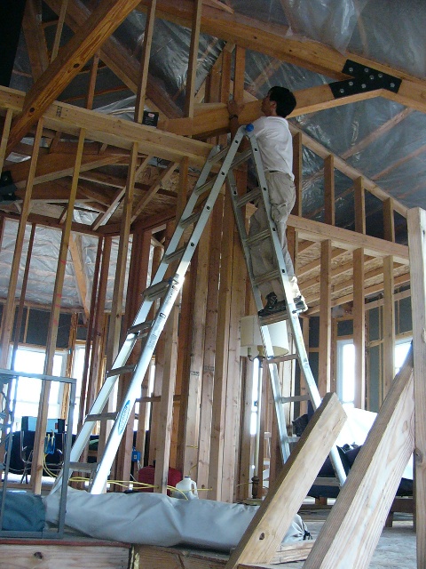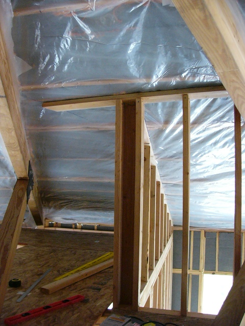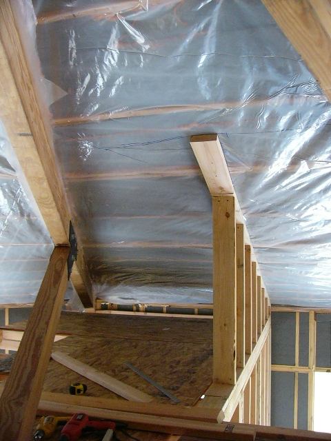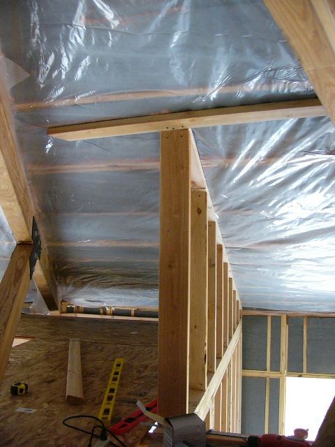 In anticipation of this, Gail had spent the previous weekend attaching more plastic sheeting to the vaulted ceiling sections as a required vapor barrier.