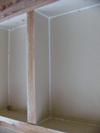 By Sunday morning, Steve and Russell had bleached four walls, painted three and caulked one (the southwest). Unfortunately, they had run out of time to begin installing the drop ceiling.