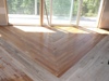Gail installs hardwood flooring in the corner of the upstairs sitting room