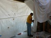 One of Joss’ advantages is that he is still thin and spry enough to fit into hard-to-reach places. Here, he installs one of the last remaining pieces of drywall up in a corner of the loft.