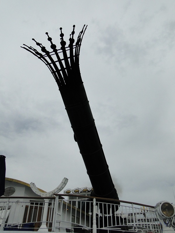 We have written before how the American Queen can lower its smoke stacks in order to pass under bridges. In addition, the Pilot House itself can be lowered nine feet in order to pass beneath particularly low bridges. During these situations, the crew actually stands out on deck to navigate the boat. Even so, we have seen bridges pass mere inches above of the lowered Pilot House.
