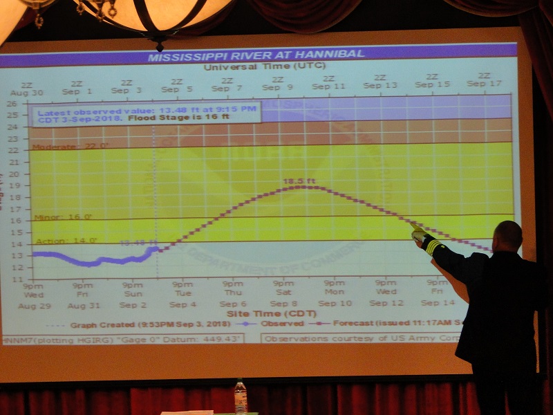 Captain Bobby showed some predictive charts of the water level of the Mississippi River. The water is expected to surpass flood levels within a matter of days.