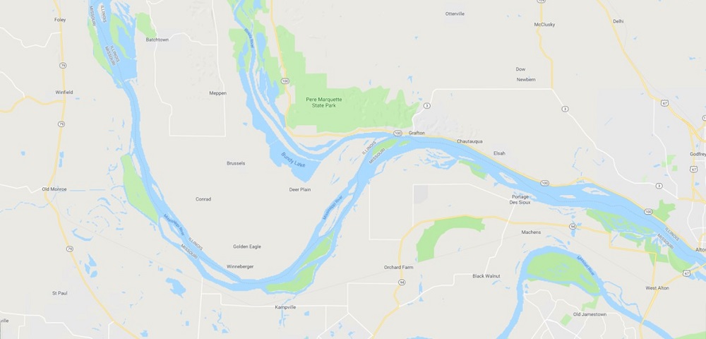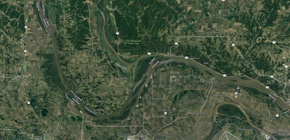 The confluence of the Mississippi and Illinois Rivers, as seen from the air