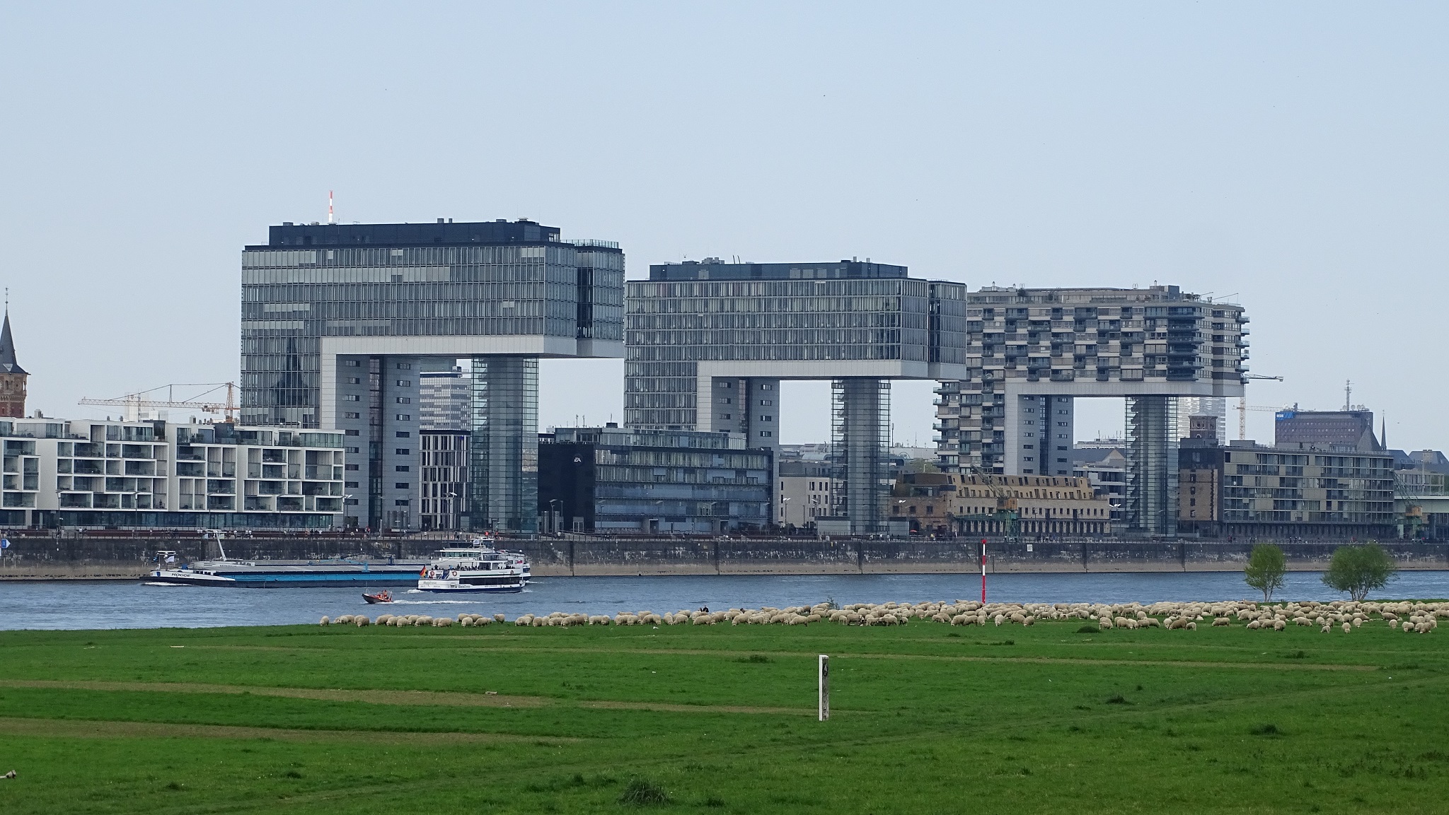 Cologne is a city of many interesting sights. Lindt has a chocolate museum here. (It used to be owned by another chocolate manufacturer. When Lindt bough it, they simply changed all of the names on things.) The contemporary Kranhäuser (Crane Buildings) were built in the early 2000s to imitate the look of construction cranes. These 17-story buildings overlook the Rhine and contain the most expensive apartments in the city.