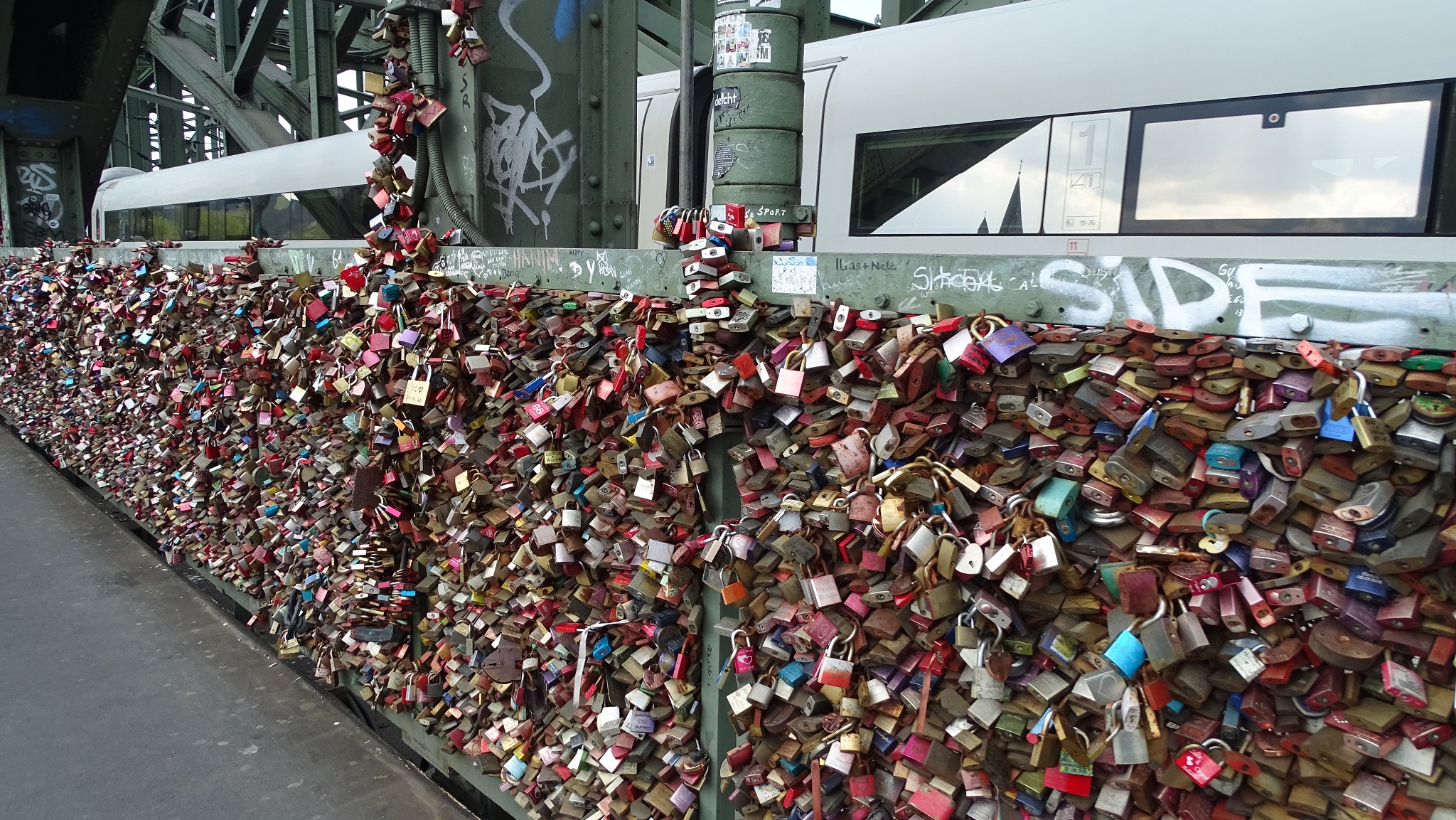 The bridge that crosses the Rhine next to the cathedral features one of Cologne’s most popular sights: love padlocks. The practice originated in a 2006 novel in which two lovers affix a bicycle lock to a lamppost and toss the key into the river. Since then, “love padlocks” have sprung up on bridges and fences from China to the Czech Republic. The practice began on Cologne’s Hohenzollermbrücke bridge in 2008, and today the bridge is adorned with more than 40,000 padlocks.