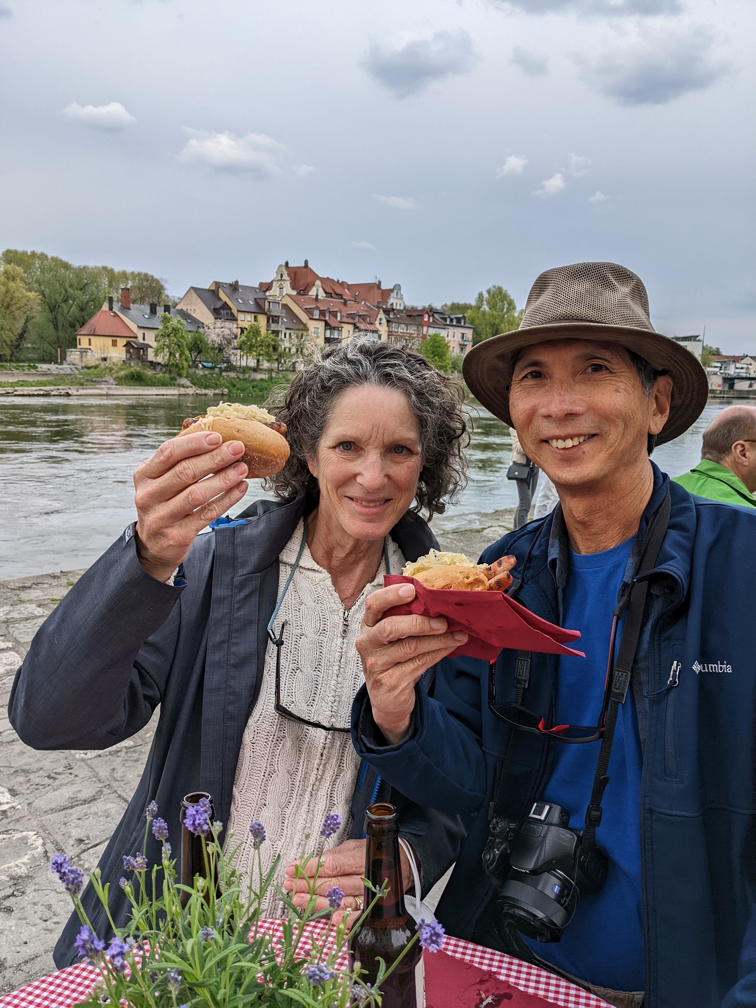 Regensburg has one more claim to fame: it is the home of Germany’s oldest purveyor of wurst (sausages). Before we left, we made a point to wait in line for a wurst and beer at the historic Wurstküche (“Wurst Kitchen”). We felt quite Bavarian, enjoying our sausage sandwiches on the banks of the Danube River.