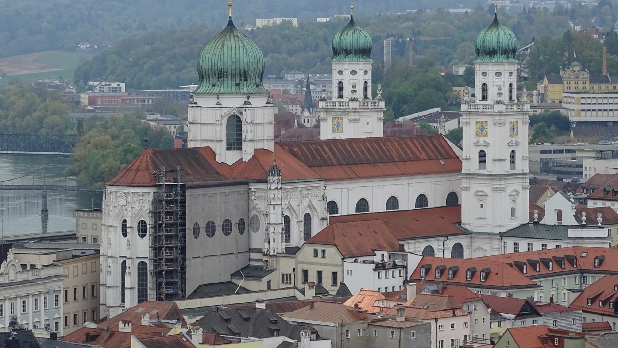 But the forecast was for rain both this morning and afternoon, so Gail took a day off to rest. Cameron took the included 90-minute “Passau Walking Tour.” Russell took the more strenuous four-hour “Hike the Passau Hills.” While Cameron and Russell saw the same sights in Old Town, Russell was able to get a better view from up in the hills.