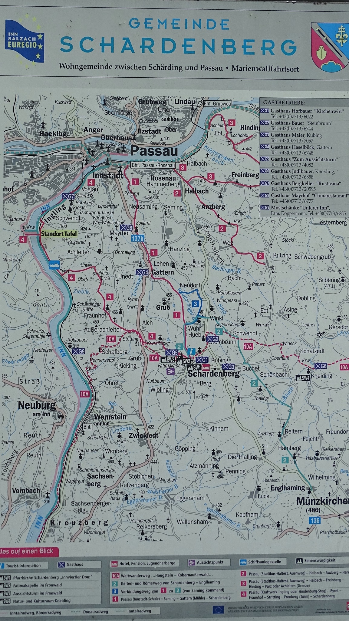 After lunch aboard ship, Cameron and Russell took the optional afternoon “Bavaria by E-Bike” excursion. This took us from Passau along the Inn River, which separates Germany from Austria. We rode on the Austrian side to the village of Wernstein for a snack, then back up on the German side to Passau. The total ride was more than 14 kilometers over three hours. The good news is that we were extremely lucky with the weather. We had clear skies for all of our outings.