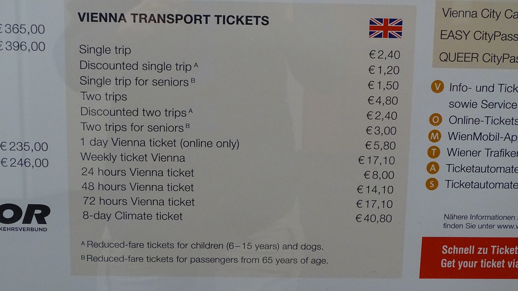 Here is the current price list, which is posted in English nearby. “Senior” is for 65 and older… if you are an Austrian citizen.