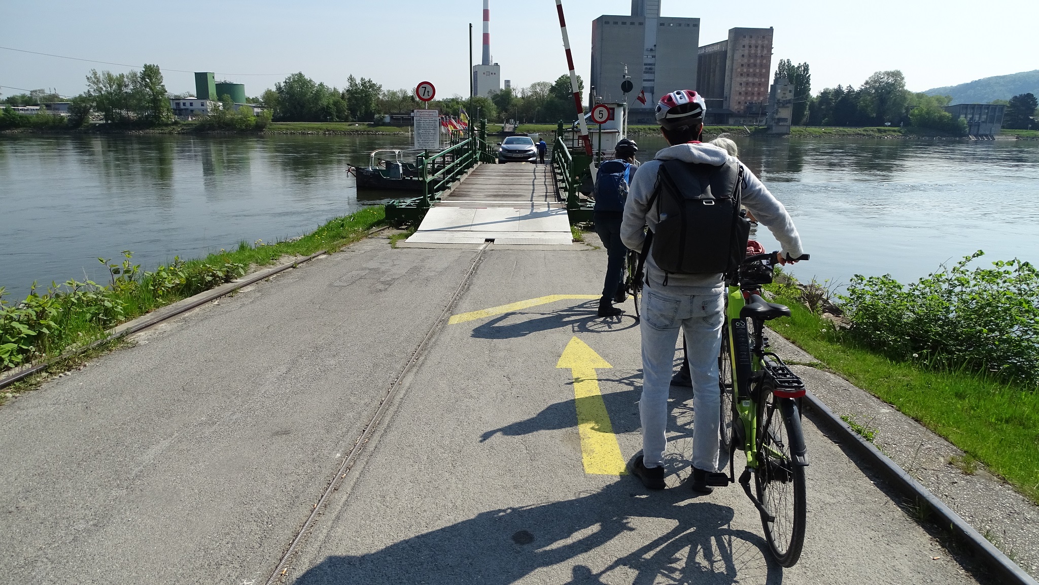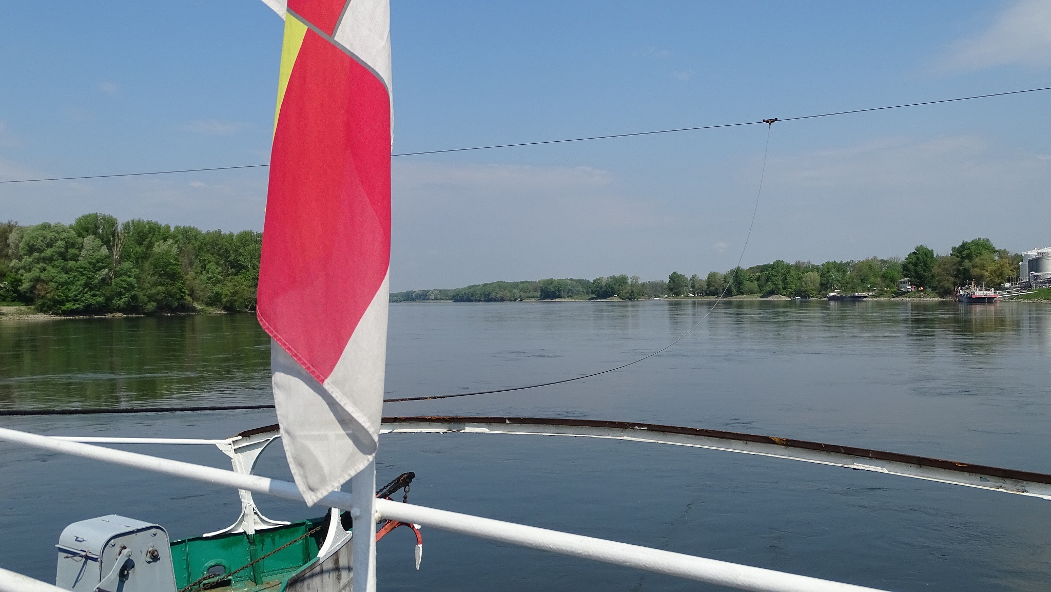 The ferry is powered entirely by the current of the Danube, similar to a sailboat tacking. An overhead cable prevents the raft from getting carried downstream