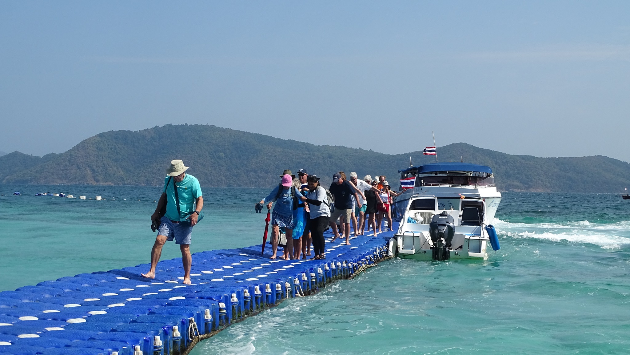 The “speedboat” part of the excursion was not quite what we expected. This was a 20-minute ride from Chalong Bay to Koh Hey island. Unfortunately, this was not a small speedboat where we felt the wind and ocean spray in our faces. Instead, it was a large, covered speedboat where we were lucky to see outside. (Fortunately, we sat in an open space near the back.)