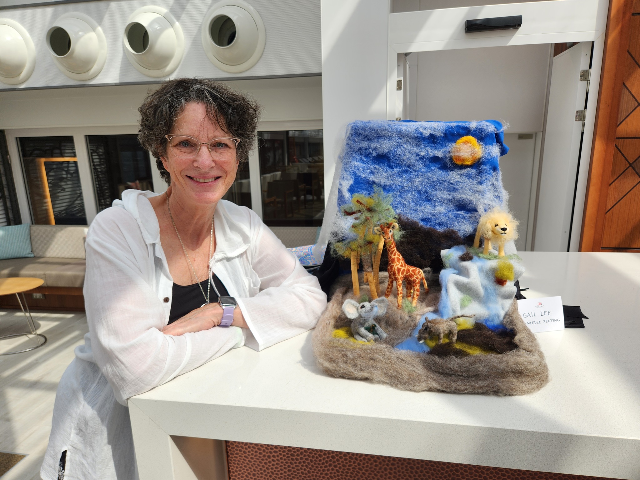 After taking the shuttle bus back to the ship, we visited more merchants who were set up along the dock. Gail was able to bargain for a couple of gorgeous hand-made quilts. She plans to use them as bedspreads when we get back home.